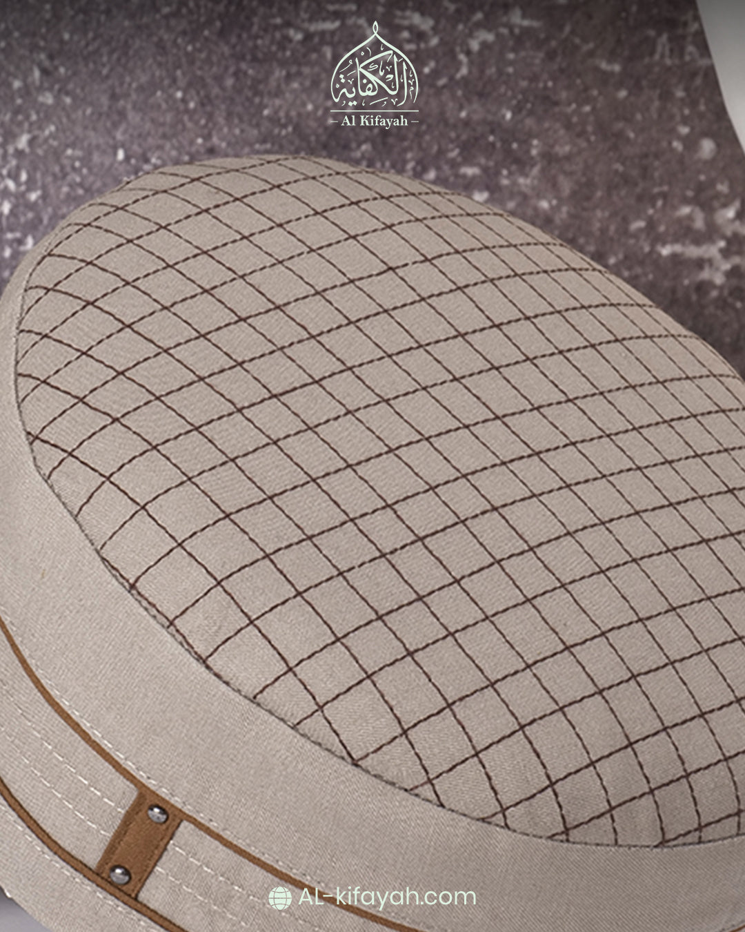 Introducing the Miqdam Koofi by Al Kifayah—a modern take on traditional headwear. This collection stands out with its unique grid pattern and accent stitching, complemented by decorative side straps for a contemporary touch. The Miqdam Koofi is crafted from high-quality materials, ensuring both comfort and a perfect fit. Available in a sophisticated palette of Beige, Blue, Brown, Jute, Grey, and Black, it’s designed to suit a variety of personal styles. Whether for prayer, community events, or everyday wear, the Miqdam Koofi combines durability with distinctive style.